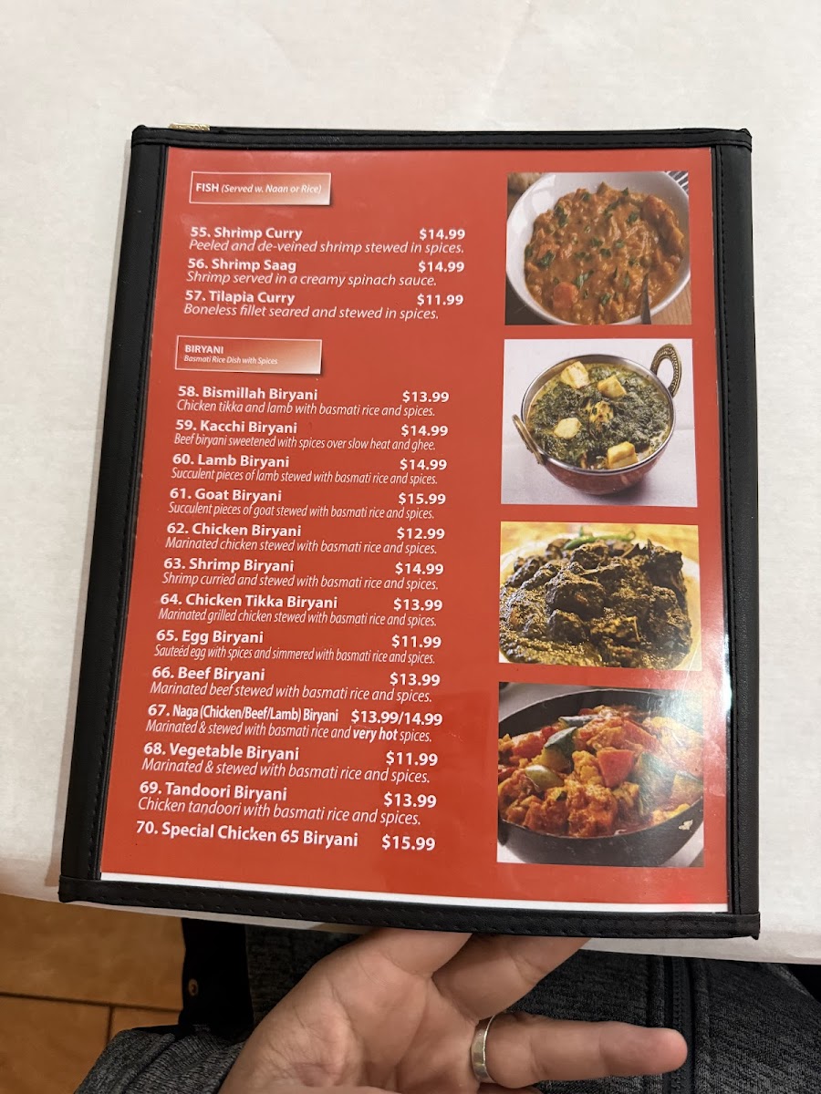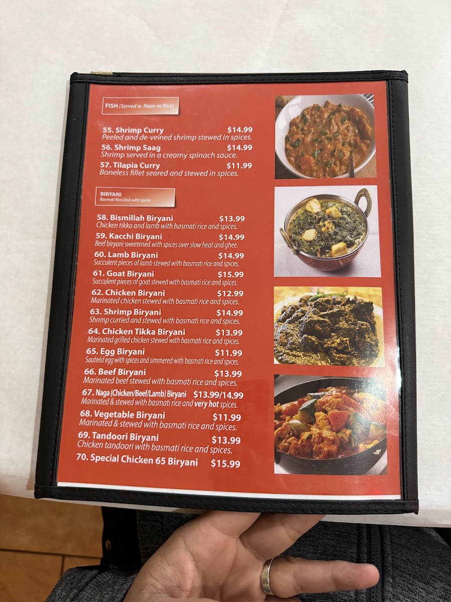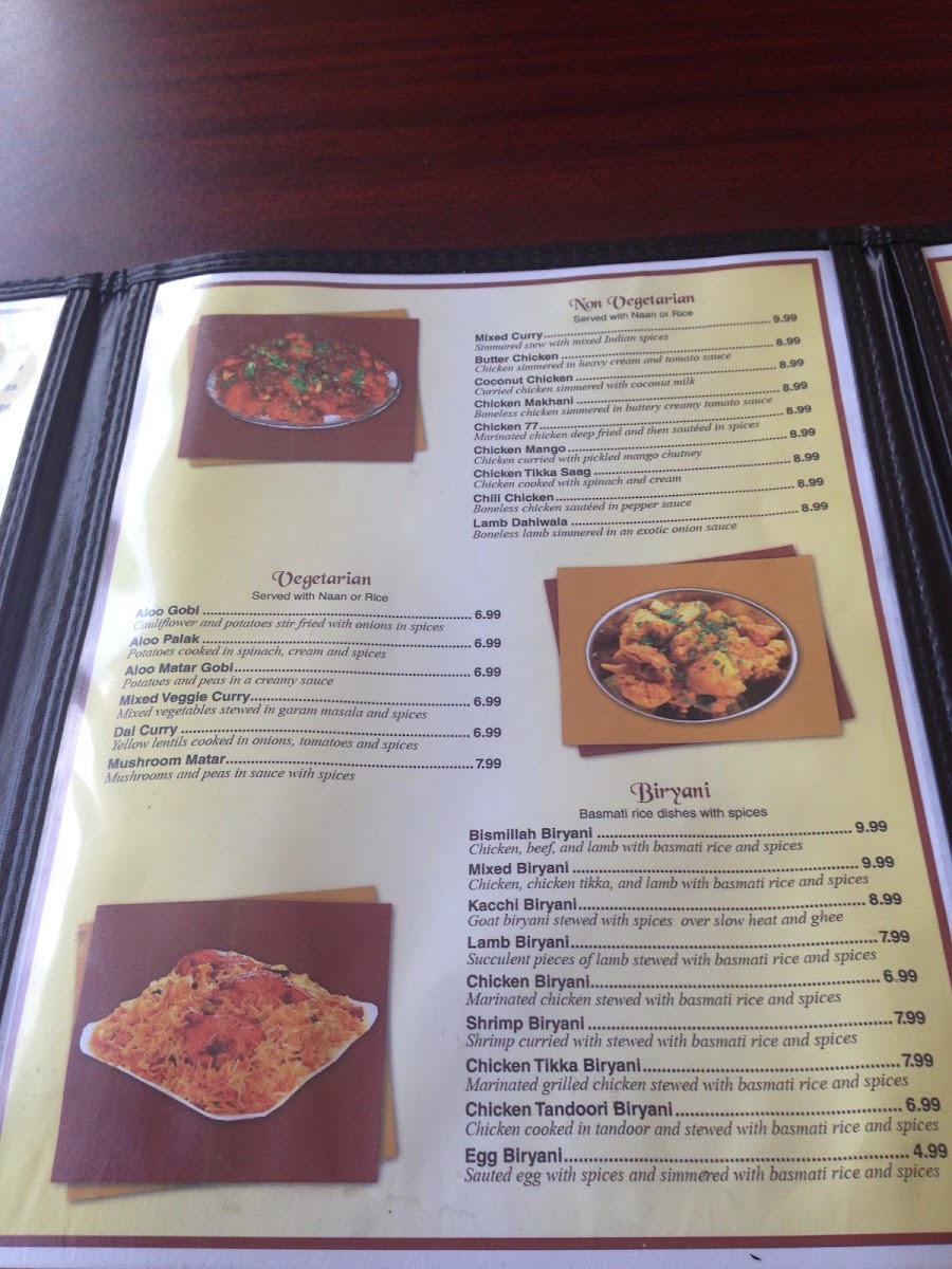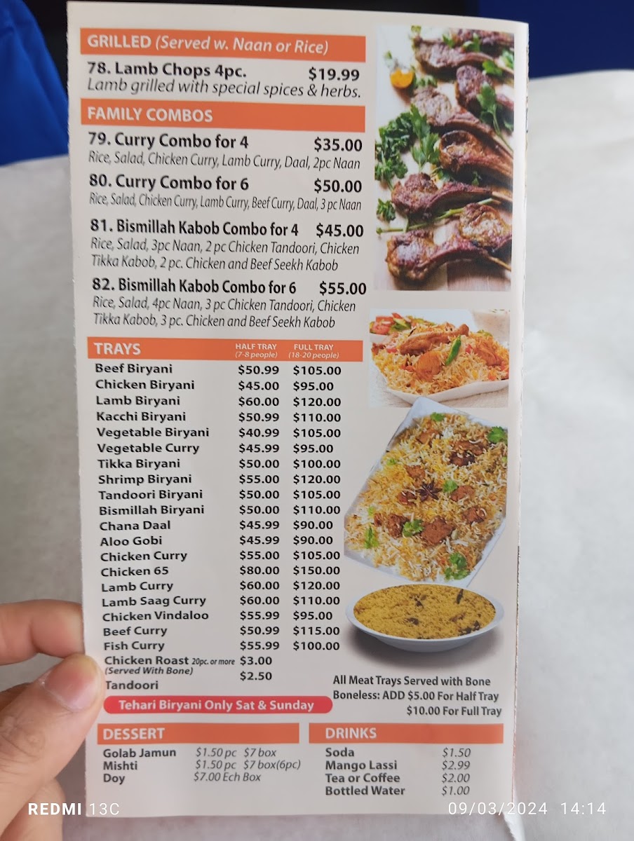 Introducing the Menu at BISMILLAH KABOB N CURRY